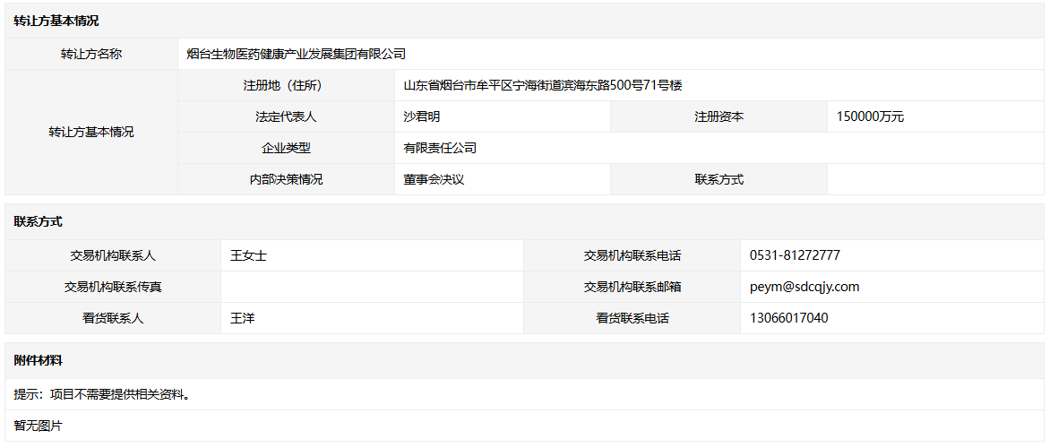 • 轉讓方:煙臺生物醫(yī)藥健康產(chǎn)業(yè)發(fā)展集團有限公司
